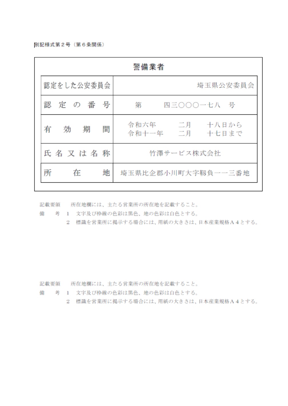 警備業者標識の掲示について